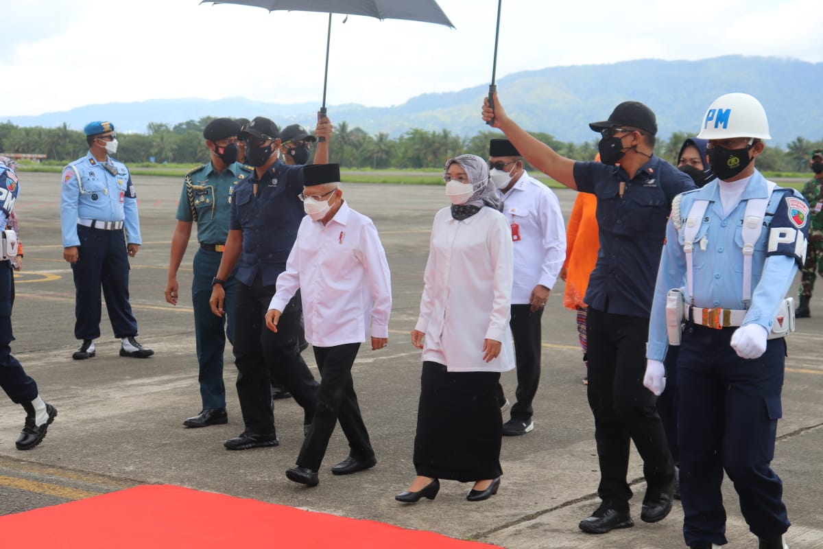 Wapres yang didampingi Istri, Ibu Hj. Wury Ma’ruf Amin tiba sekitar pukul 12.30 Wit menggunakan pesawat khusus Kepresidenan Boeing 737-400 TNI AU yang bertolak dari Jakarta.