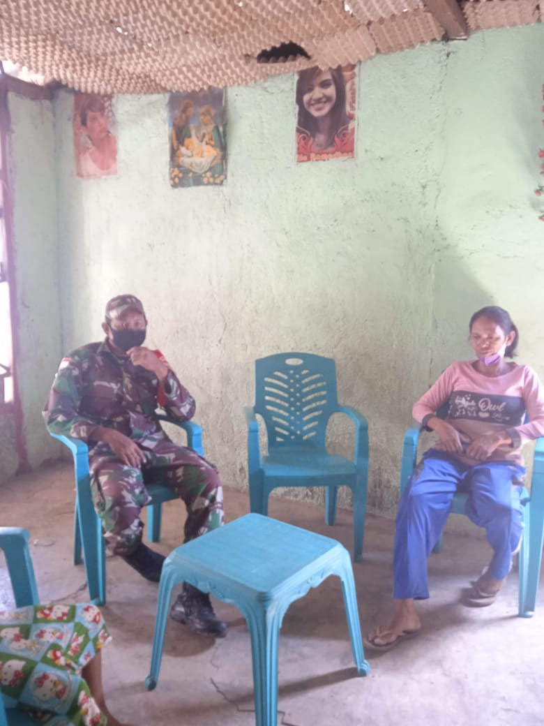 TEPA, Lintas-Berita ,– Babinsa Koramil 1511-03/ pulau Tepa, Sertu Suhardi Ode , melaksanakan Giat anjangsana bersama warga yang bertempat di rumah ibu Tina Unawekly di Desa Tepa Kecamatan Pulau pulau Babar Kabupaten Maluku Barat Daya, Kamis (21/10/21).