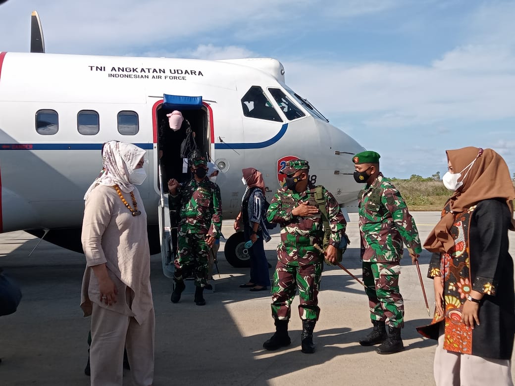TIAKUR, Lintas-Berita,- Pangdam XVI/Pattimura, Mayjen TNI Bambang Ismawan bersama Ketua Persit KCK PD XVI/Pattimura Ny.Ismawan melakukan Kunjungan kerja (kunker) perdana di Kabupaten Maluku Barat Daya (MBD).Rombongan bertolak dari Bandara Saumlaki Maltida Batlayery menuju ke Bandara pulau Moa Jos Orno Imsula dan tiba pada pukul 16.00 WIT dengan mengunakan Pesawat angkatan Udara tipe pesawat CN 235 dangan nomor pesawat AI.2318, Minggu (24/10/21).