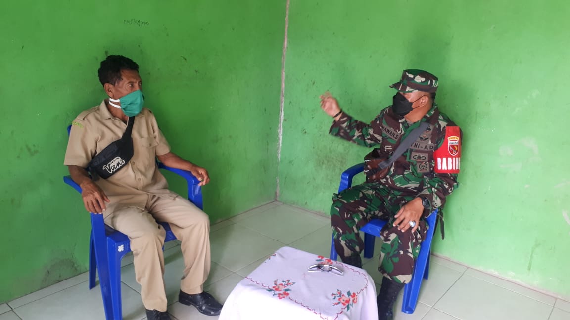 TIAKUR, Lintas-Berita.com_Guna mendukung Tugas Pokok sebagai Seorang Babinsa serta terwujutnya Kemanunggalan TNI dengan Rakyat Babinsa Desa Patti Koramil 1511- 01/Tiakur, Kopda Wawan Supriyadi Melaksanakan komunikasi sosial (Komsos) Dengn Bapak Sius Karmantio Desa Patti Kecamatan Pulau Moa Kabupaten Maluku Barat Daya, Rabu (08/12/21).