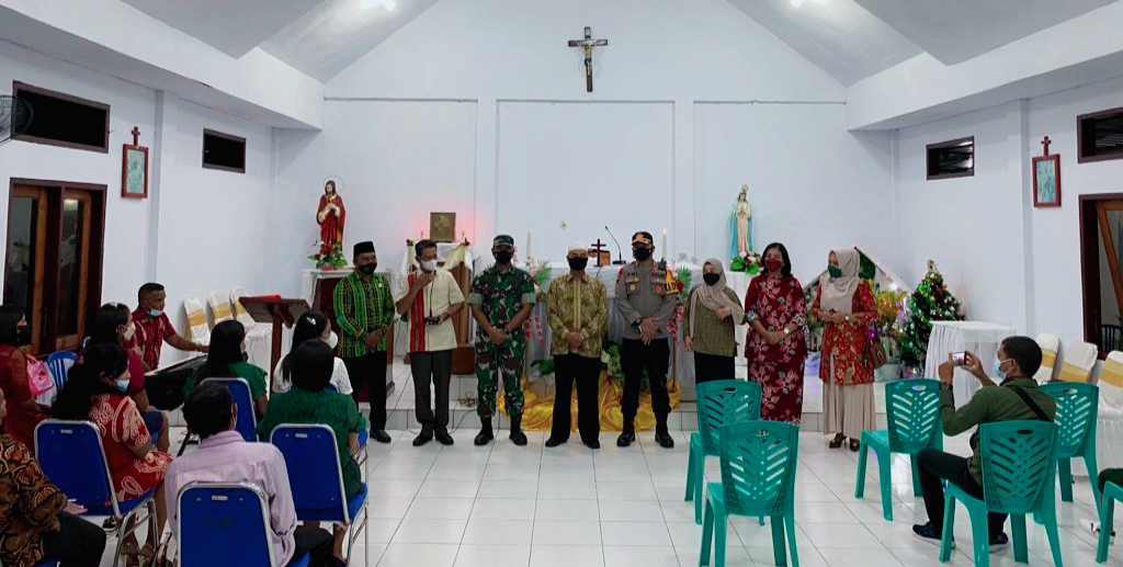 Tiakur, Lintas-Berita.com_ Forkopimda kabupaten Maluku Barat Daya Melaksanakan Safari kamtinmas kepada warga jemaat Gereja protestan Maluku (GPM) dan jemaat Sidang Jemaat Allah (GSJA) yang berlangsung di gedung Gereja GPM dan GSJA Tiakur dalam rangka menyampaikan Ucapan selamat merayakan ibadah Natal Kristus 25 Desember 2021.