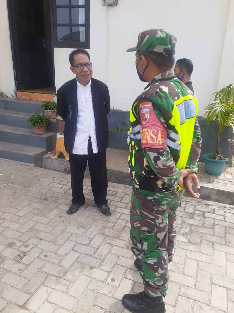 Babinsa Serda Ahmad, berkomitmen untuk bersinergi dan bekerja sama dalam melaksanakan pengamanan untuk memberi rasa aman dan nyaman kepada saudara kita yang melaksanakan ibadah mingguan sehingga terciptanya toleransi antar umat beragama.