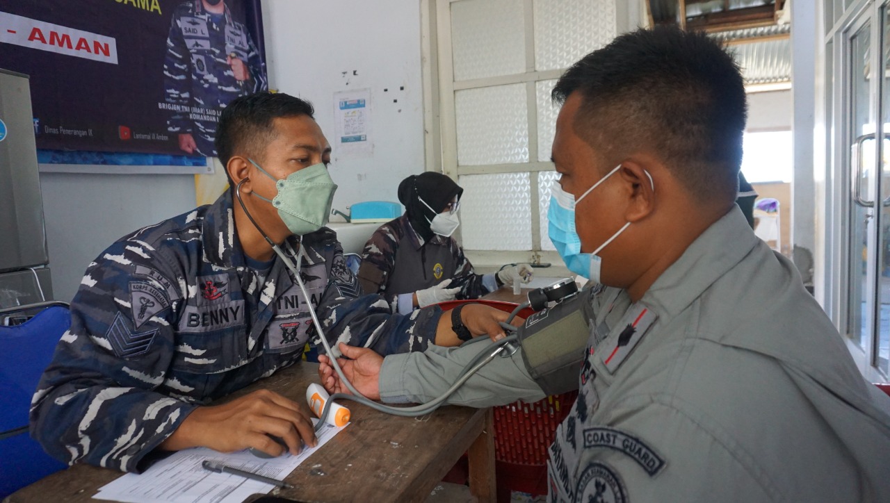 Serbuan vaksin Lantamal IX Ambon di Posko Covid-19 melibatkan 7 orang petugas vaksinator dari Rumkital dr. F. X. Suhardjo dengan target 50 peserta.