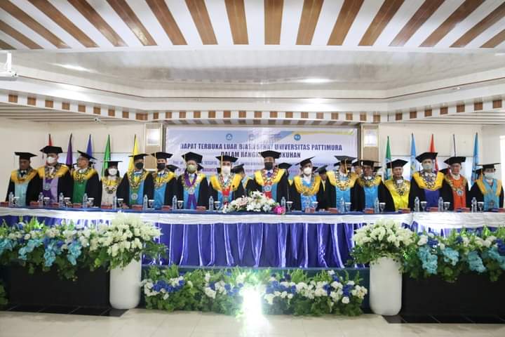 Ambon, Lintasberita.com_ Dalam Rapat Terbuka Senat Luar Biasa Universitas Pattimura dilakukan pengukuhan terhadap 3 Guru Besar Universitas Pattimura, Jumat (24/6) di Aula Lantai II Gedung Rektorat Universitas Pattimura. Mereka yang dikukuhkan yaitu Prof. Dr. Juliaans E. R. Marantika, M.Pd sebagai Guru Besar Bidang Ilmu Pendidikan Bahasa pada Fakultas Keguruan dan Ilmu Pendidikan Universitas Pattimura, Prof. Dr. Ir. Johannes M. S. Tetelepta, M.Sc., M.Phil dikukuhkan sebagai Guru Besar Bidang Kelautan pada Fakultas Perikanan dan Ilmu Kelautan Universitas Pattimura dan Prof. Dr. J. R. Pattiruhu, SE., M.Si sebagai Guru Besar Bidang Ilmu Manajemen Fakultas Ekonomi dan Bsinis Universitas Pattimura. Dengan dikukhkannya tiga guru besar saat ini maka total jumlah Guru besar di Universitas Pattimura yaitu 77 Guru Besar.