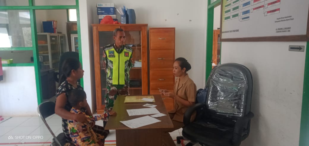 Tiakur, Lintas-Berita.com_ Babinsa Desa Tounwawan koramil 1511-01/Tiakur, Kopda Yamres Saiklela Melaksanakan Pendampingan Dan Koordinasi Guna Mensinergikan Serta Mensukseskan Giat TNI Manunggal Kesehatan Bangga Kencana Dan Mengerahkan Masyarakat(ibu-ibu) utk Menjadi Aseptor KB dan Mengarahkannya Menuju Fasilitas Kesehatan Terdekat Kepada Masyarakat Desa Tounwawan Kecamatan Moa Kabupaten Maluku Barat Daya, Selasa (27/09/22).