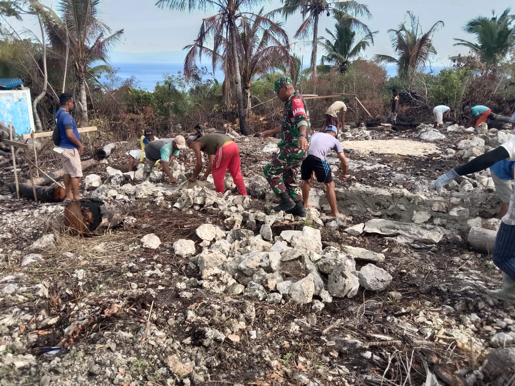 Masela, Lintas-Berita.com_ Guna terciptanya sinergitas TNI bersama Rakyat, Babinsa koramil 1511-02/Pulau Masela, Kopda Jefri. Refaulu. melaksanakan kerja bakti (karbak) bantu pembuatan Pondasi Rumah warga yakni, Bapak Nus Wakim Kecamatan Pulau Masela Kabupaten Maluku Barat Daya, Jumat (07/10/22).
