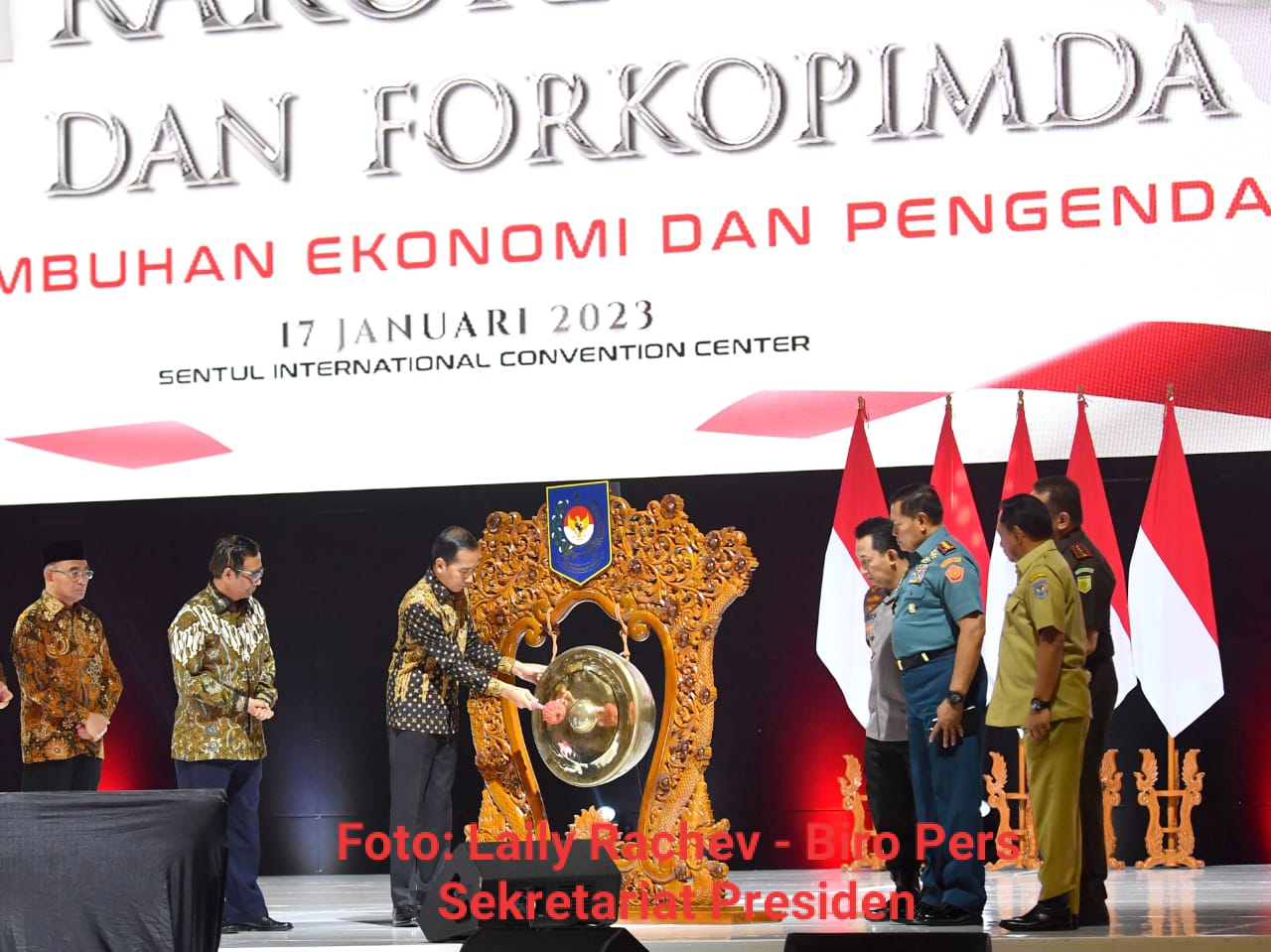 Bogor, Lintas-Berita.com_ Presiden Joko Widodo secara resmi membuka Rapat Koordinasi Nasional (Rakornas) Kepala Daerah dan Forum Komunikasi Pimpinan Daerah (Forkopimda) Se-Indonesia Tahun 2023 yang digelar di Sentul International Convention Centre, Kabupaten Bogor, Provinsi Jawa Barat, Selasa, 17 Januari 2023. Dalam arahannya, Presiden antara lain mengajak para kepala daerah dan Bank Indonesia untuk bekerja keras menangani inflasi yang menjadi momok bagi semua negara.