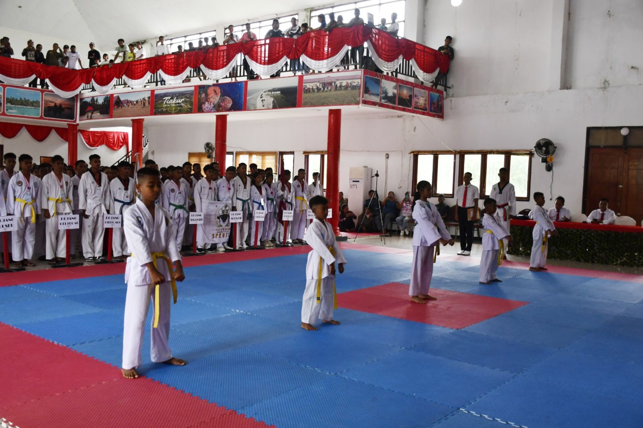 Kejuaraan Taekwondo Antar Klub pemperebutkan Piala Bupati Cup I di MBD resmi bergulir di Gedung Serbaguna Tiakur, Minggu, 7 Desember 2025.